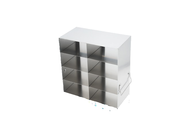 For Standard 3″ Boxes2×4 Configuration Constructed of corrosion resistant stainless steel Racks fit standard 3" cardboard, plastic, or metal boxes Security lock devices available for each rack Freezer Storage Racks are constructed of high-quality, corrosion resistant stainless steel. Handles at both ends accommodate freezers with right or left-hand doors. Our freezer racks have been configured to fit all major ultra-low (-80°) freezers on the market; racks are designed for ultra-low upright freezers. Dimensions (DxWxH): 11 1/2 x 5 1/2 x 12 5/8 inches (292 x 140 x 321mm)Compartment Dimensions: 5 3/8 x 5 7/16 x 3 1/16 inches (136 x 138 x 79.2mm)