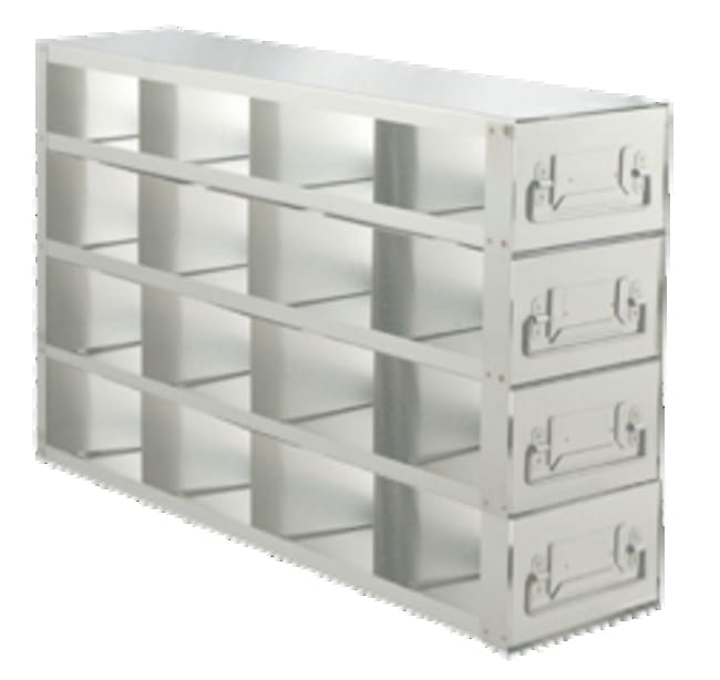 For High Standard 3.75″ Boxes These Upright Freezer Drawer Racks for 3.75" standard boxes offer convenient storage of samples in an organized format. Constructed of corrosion resistant stainless steel, these freezer racks include durable handles for easy removal from the freezer. Constructed of corrosion resistant stainless steel Racks fit standard 3.75" standard boxes Fit all major ultra low (-80°) freezers on the market Dimensions L x H x W: 22 3/16 x 16 11/16 x 5 1/2 inch (286 x 424 x 140mm)Compartment Dimensions L x H x W: 5 3/8 x 3 15/16 x 5 1/4 inch (137 x 100 x 133mm)