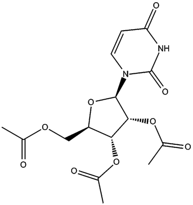 Uridine triacetate is an orally bioavailable prodrug of uridine It is designed to undergo rapid intestinal absorption followed by enzymatic deacetylation in circulation thereby releasing free uridine Uridine triacetate exerts its biological activity primarily through metabolic conversion to uridine which supports studies of systemic toxicity induced by chemotherapeutic agents such as 5-fluorouracil (5-FU) and capecitabine Based on these pharmacological properties uridine triacetate holds research potential in examining mechanisms underlying chemotherapy-induced cardiac and central nervous system toxicity as well as in studying metabolic events related to uridine homeostasis and therapeutic intervention following drug overdose or excessive chemotherapeutic exposure