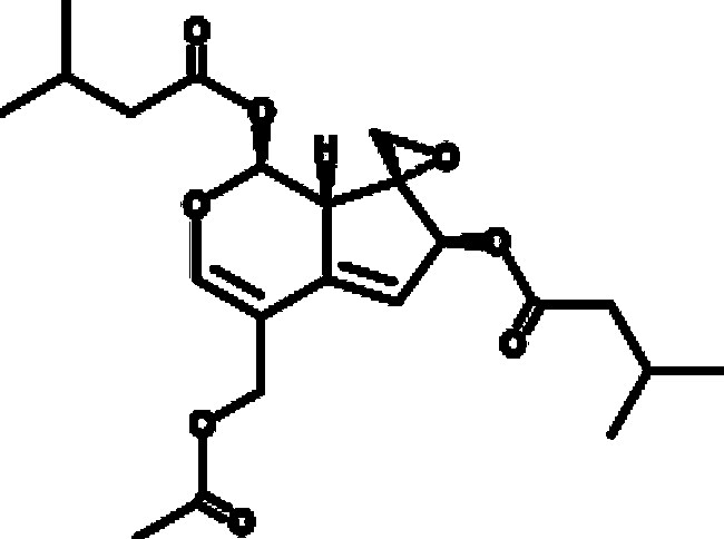 A valepotriate with diverse biological activities; inhibits nuclear export of influenza vRNP in HeLa cells at 3.6 µM; inhibits influenza virus infection in MDCK cells (IC50 = 0.19 µM); cytotoxic to GLC-4 and COLO 320 cells (IC50s = 1.4 and 3 µM, respectively); increases the number of entries into, and percentage of time spent in, the open arms of the elevated plus maze, indicating anxiolytic-like activity, and decreases serum corticosterone levels in rats at 10 mg/kg