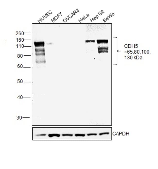This product is preservative free. It is recommended to add sodium azide to avoid contamination (final concentration 0.05%-0.1%). Recombinant rabbit monoclonal antibodies are produced using in vitro expression systems. The expression systems are developed by cloning in the specific antibody DNA sequences from immunoreactive rabbits. Then, individual clones are screened to select the best candidates for production. The advantages of using recombinant rabbit monoclonal antibodies include: better specificity and sensitivity, lot-to-lot consistency, animal origin-free formulations, and broader immunoreactivity to diverse targets due to larger rabbit immune repertoire. This antibody has specificity for Human VE-Cadherin/CD144/CDH5.