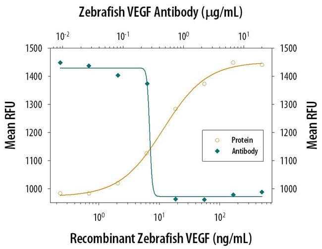 In Western blots, less than 2% cross-reactivity with recombinant human VEGF165, recombinant mouse VEGF164, and recombinant rat VEGF164 (under non-reducing conditions) is observed. Reconstitute at 0.2 mg/mL in sterile PBS. Endoxin level is <0.10 EU per 1 μg of the antibody by the LAL method.