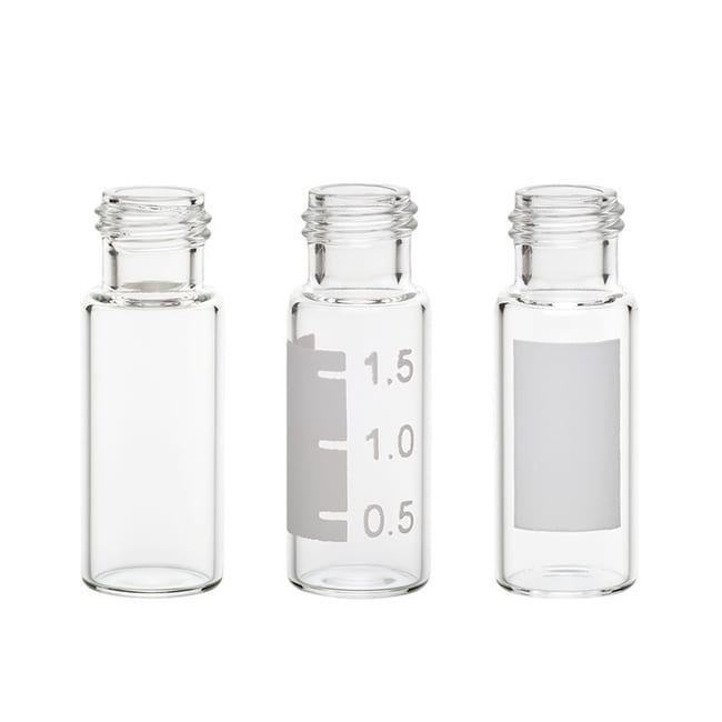 Vial, 2.0mL, Clear, Silanized, Large Opening, 12x32mm, 9mm Thread. With a 40% larger opening, these vials are specifically designed to work in robotic arm auto samplers. They also incorporate the unique Step Vial design that precisely centers a limited volume insert in the neck of the vial. Available with graduated marking spots, and silanized.