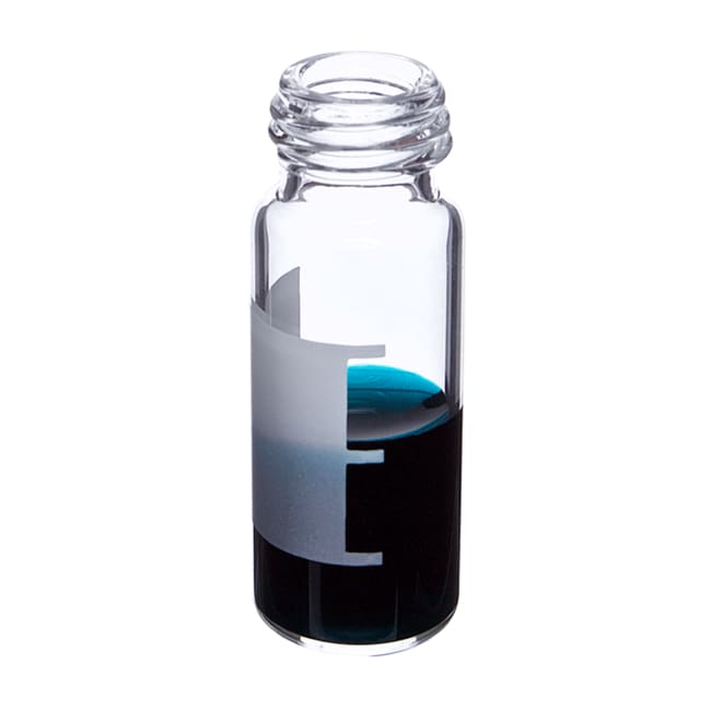 Vials, Screw Top, Glass. Clear, 2ml, with Write-On Patch and fill lines, 9-425mm threads, 12x32mm outer dimensions. For use as an autosampler vial. RSA Brand. 100/PK.