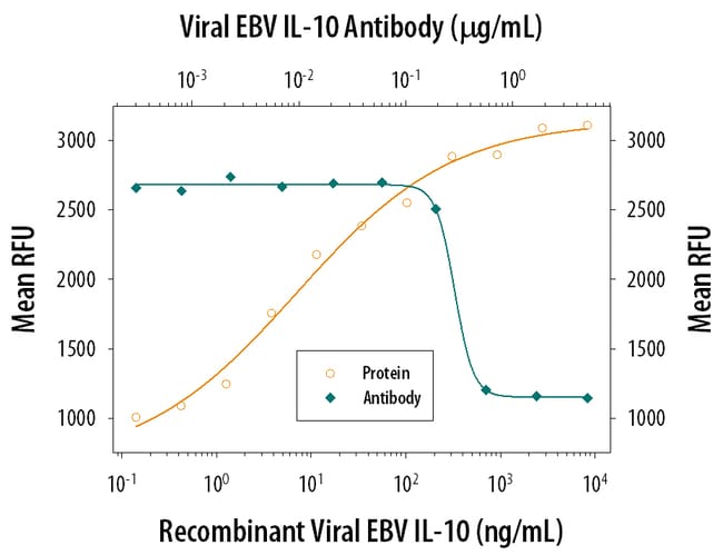 | Detects viral EBV IL-10 in direct ELISAs and Western blots. In Western blots, less than 10% cross-reactivity with recombinant canine IL-10, recombinant feline IL-10, recombinant mouse IL-10, recombinant porcine IL-10, and recombinant rat IL-10 is observed. | |
