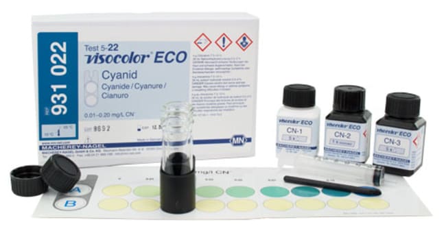 Environmental test kit for Cyanide Gradation of scale: 0.01 -0.02 - 0.03 - 0.05 - 0.07 - 0.10 - 0.15 - 0.20 mg/l 100 tests/kit