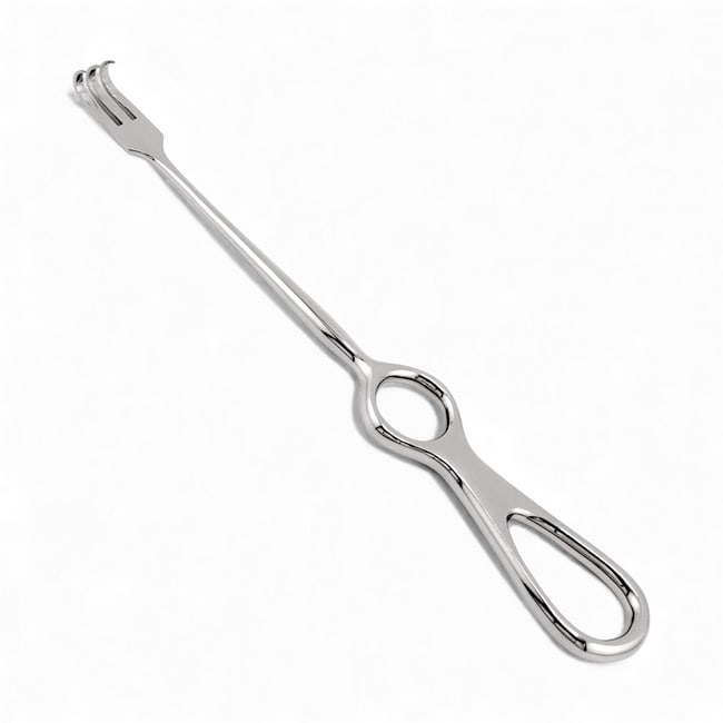- Sharp prongs provide secure, controlled retraction of soft tissue during deep or confined areas