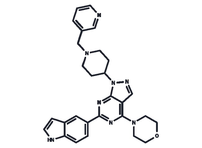 Also available in 1 mg 2 mg 10 mg 25 mg 50 mg 100 mg 500 mg 1 mL 10 mM (in DMSO) and bulk. Please contact Fisher for quotes. WAY-600 is a potent ATP-competitive and selective inhibitor of mTOR with IC50 of 9 nM; blocks mTORC1/P-S6K(T389) and mTORC2/P-AKT(S473) but not P-AKT(T308); selective for mTOR than PI3K(alpha) (>100-fold) and PI3K(gamma) (>500-fold). purity: 99%