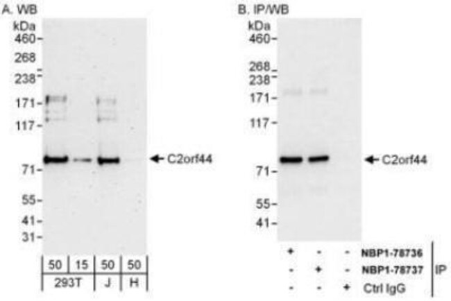 The immunogen for this product maps to a region between residue 450 and 500 of human Chromosome 2 Open Reading Frame 44 using the numbering given in entry NP_079479.1 (GeneID 80304). | |