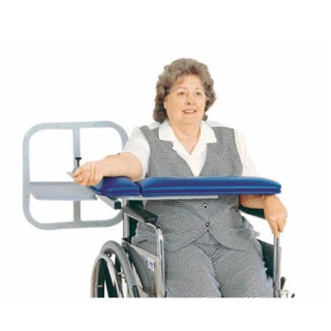 Wheelchair Blood Drawing Station Arm is wall mountable and allows quick and easy blood draw access to patients in wheelchairs ∙ Wheelchair Blood Draw Station Arm folds up vertically against the wall when not in use∙ Extra wide padded arms provide patient comfort and are easy to clean∙ Arm is adjustable up/down as well as in/out for patients of different sizes ∙ When not in use this Wheelchair Blood Drawing Station Arm can be positioned in the upright position against the wall∙ Convenient side tray holds blood draw supplies so you don't have to∙ No need to bolt this unit to the floor like other less flexible units on the market∙ Overall Width: 32"; Overall Depth: 33" - 45"; Overall Height (folded up): 33" - 45"