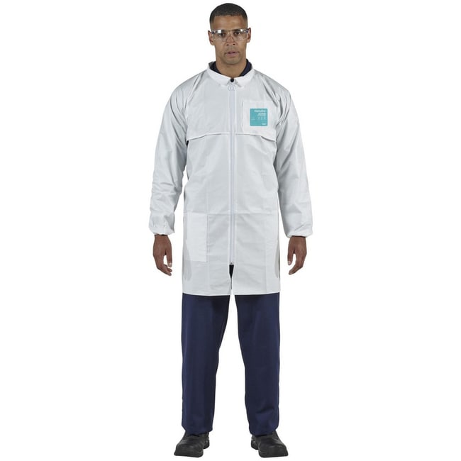 Disposable & Chemical Resistant Lab Coats; Garment Style: Coat ; Gender: Unisex ; Size: 4X-Large ; Cuff Style: Elastic ; Material: Microporous Polyethylene Laminate Non-Woven ; Closure Type: Zipper