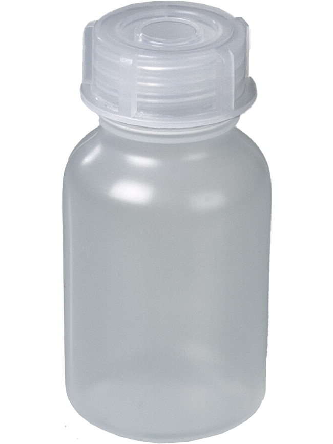 The wide-neck PP bottle is highly resistant to chemicals, and is shock and drop resistant. The bottle is also food safe and autoclavable.