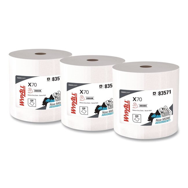 WypAll is the number one brand of disposable wipes in the US and Canada Maximize performance while minimizing time effort and product waste If you ve been using either laundered shop towels or textile shop rags it s time to make the switch to WypAll PowerClean X70 Cloths These medium-duty cloths are durable absorbent industrial cloths featuring high-tech Hydroknit material WypAll X70 cloths now absorb up to 20pct more oil and water than before In addition they feature a new cloth-like look and feel for enhanced absorbency making them even more effective for your cleaning tasks These cloths are made of soft pulp fibers bonded to a polypropylene base sheet for absorbency and tear resistance making them suitable for removing dirt oil grime and solvents in a variety of industrial and manufacturing industries These cloths are so sturdy that they can often be used more than once (Once you ve used them a few times they re disposable ) These premium industrial cleaning clo
