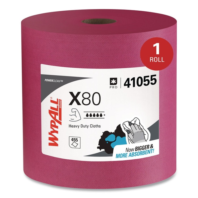 WypAll is the number one brand of disposable wipes in the US and Canada Maximize performance while minimizing time effort and product waste If you ve been using industrial cloth towels it s time to make the switch to WypAll PowerClean X80 Cloths These cloths feature innovations like high-tech Hydroknit fast-absorbing material and are durable for scrubbing WypAll X80 cloths now absorb over 20pct more oil and up to 15pct more water than before In addition they now feature a tough precision-engineered surface texture making them even more effective for your cleaning tasks The heavy-duty cloths are made of soft pulp fibers bonded to a polypropylene base sheet for absorbency and durability making them suitable for removing dirt oil grime and solvents in industrial and manufacturing businesses The cloths are reusable and reinforced for strength when wet and dry These bulk cloths are a great alternative safer and more efficient to replace laundered rental shop towels a