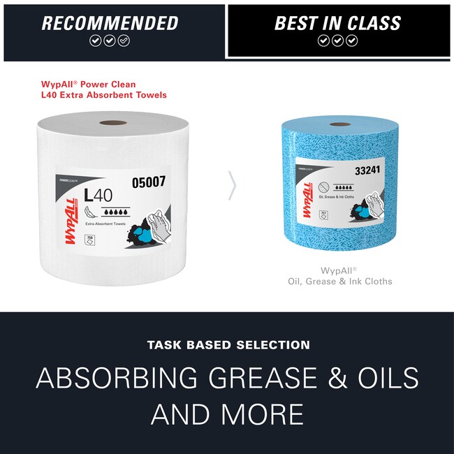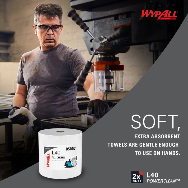Tough, durable wipers absorb liquids, oils, and grease quickly, yet are soft and pliable enough to use on face and hands