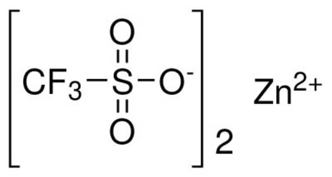 CAS# 54010-75-2. 25g. Zinc trifluoromethanesulfonate, min. 98% (Zinc triflate). MFCD00013229. Molecular Weight: 363.54. Molecular Formula: Zn(SO3CF3)2. Color/form: white pwdr. Strem# 30-4000. http://www.strem.com/catalog/v/30-4000/