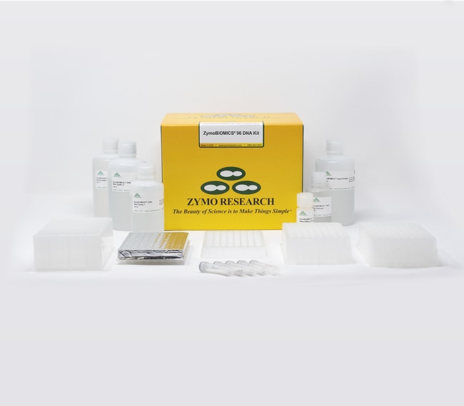 Zymo Research Corporation ZymoBIOMICS 96 DNA Kit (2 x 96 preps)Includes: [D4307] ZymoBIOMICS 96 DNA Kit x 1, [S6012-50] ZR BashingBead Lysis Tubes (0.1mm & 0.5 mm) 50 pack x 4[D4300-1-150] ZymoBIOMICS Lysis Solution, 150 ml x 1