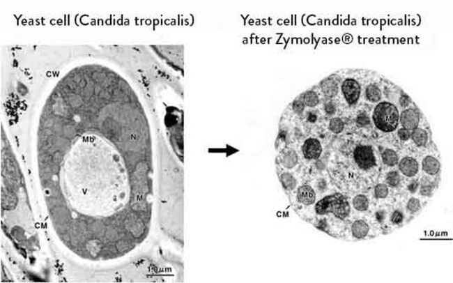 Zymolyase is produced by a submerged culture of Arthrobacter luteus, which has an effective lytic activity against cell walls of viable yeast cells to produce protoplast or spheroplast of various strains of yeast cells. Zymolyase is a necessary part of the protocol for many experimental procedures including immunofluorescence, transformation, protein purification and spheroplasting. MAIN FEATURES: Strong lytic activity against living yeast cell walls | Provided as a lyophilized powder | Suitable for protoplast/spheroid preparation, yeast cell fusion, transformation of yeast cells, and yeast genetics | Activity of 20,000 units/g | Produced by a submerged culture of Arthrobacter luteus and their essential enzyme activity is β-1,3-glucan laminaripentao-hydrolase.